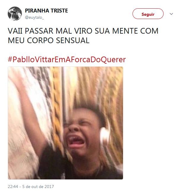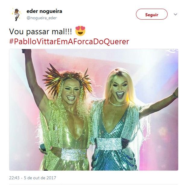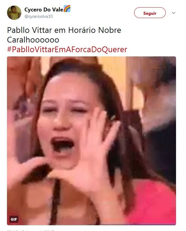 Vc quer hino, bb? TOMA! #AForçaDoQuerer #PablloVittarEmAForcaDoQuerer pic.twitter.com/ZKQi8Jwn1A