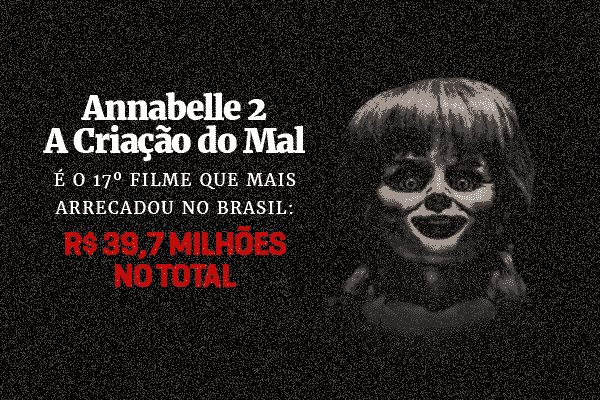 Neste ano, dois filmes de terror fizeram a cabeça dos brasileiros: “Annabelle 2 – A Criação do Mal” e “It – A Coisa”. O longa da boneca assustadora liderou as bilheterias, superando a ficção científica “Planeta dos Macacos: A guerra” e a cinebiografia brasileira “Bingo: O Rei das Manhãs“.