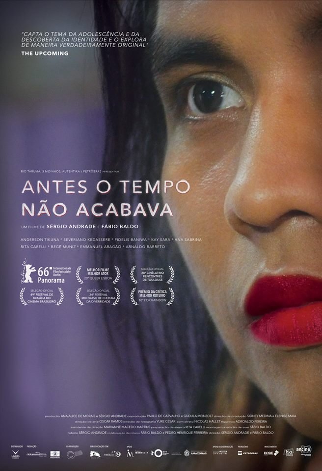 1/18O nacional “Antes o Tempo não Acabava”, de Sérgio Andrade e Fábio Baldo, narra a mudança de um indígena da aldeia para a cidade grande. O longa passou na mostra competitiva do 49º Festival de Brasília, em 2016. Veja trailerLivre Filmes/Divulgação 2/18Pôster de “Antes o Tempo não Acabava”Livre Filmes/Divulgação
