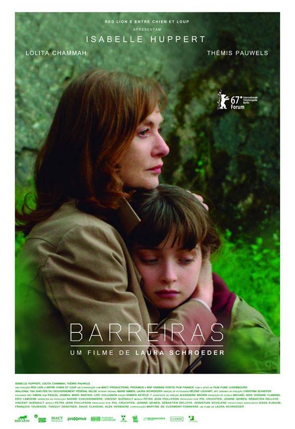 7/18Intrigas numa família de mulheres são o mote de “Barreiras”, com Isabelle Huppert. Laura Schroeder dirige o longa. Veja trailerPandora Filmes/Divulgação 8/18Poster do filme “Barreiras”Pandora Filmes/Divulgação