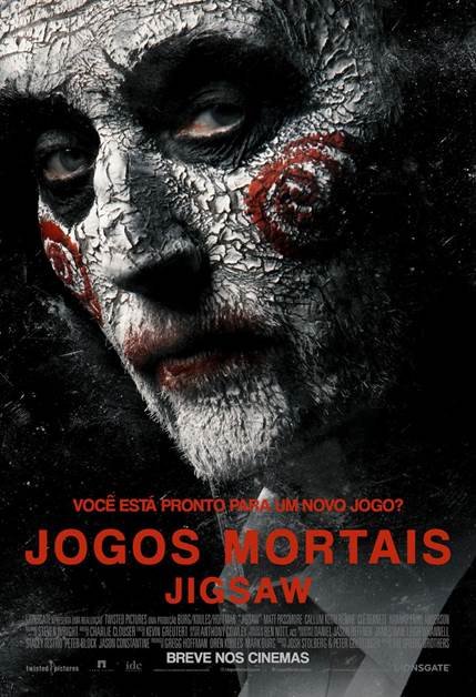 11/18Oitavo capítulo da franquia “Jogos Mortais”, o filme “Jigsaw” narra investigações que apuram o surgimento de imitadores do temido serial killer. Veja trailerDivulgação 12/18Pôster de “Jogos Mortais: Jigsaw”