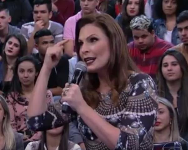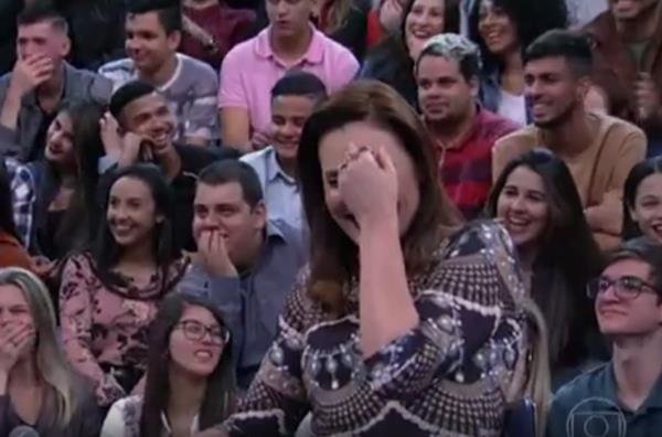 3/8Garganta profunda. Outro momento engraçado aconteceu quando um jovem perguntou à sexóloga se praticar “garganta profunda” com frequência poderia trazer danos à saúde. Antes da resposta, Groisman pediu que o participante exemplificasse a dúvida. E ele demonstrou o ato fingindo colocar o microfone na boca. Laura Muller não segurou a risada, mas esclareceu a questão: “`Às vezes, as pessoas têm a mania de colocar muita coisa onde não cabe tanta coisa assim”Reprodução/Globo