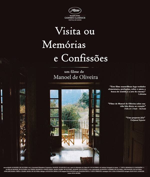 15/16“Visita ou Memórias e Confissões”. O cineasta português Manoel de Oliveira quis que um de seus filmes só fosse lançado após sua morte. Quando ele morreu, aos 106 anos, em 2015, veio à tona tal produção, rodada em 1981. Trata-se de uma crônica bastante pessoal estrelada pelo próprio diretor. O filme parte da mudança de casa, residência dele por 40 anos, para repassar vida e carreira no cinema. Veja trailerDivulgação 16/16Pôster de “Visita ou Memórias e Confissões”Divulgação