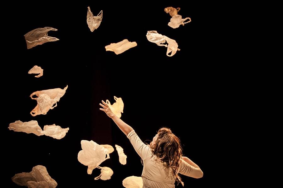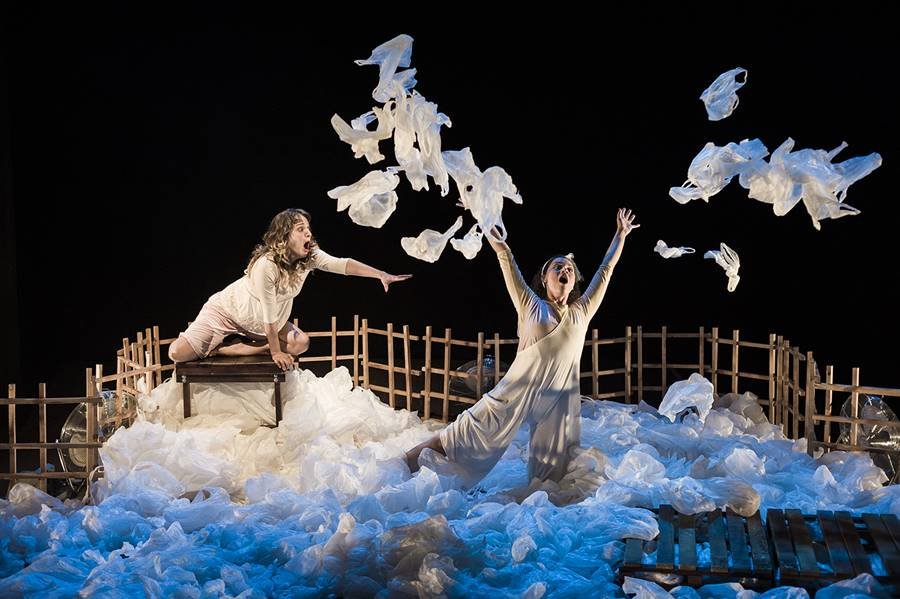 Apresentado pela primeira vez na cidade em 2015, “Achadouros” cria um quintal imaginário ocupado pelas atrizes Caísa Tibúrcio e Nara Faria. Limitado por um cercado de madeira, o cenário reúne mais de 4 mil sacolas plásticas e propõe uma reflexão sobre o início da infância e o surgimento das nossas primeiras memórias.