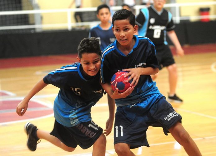 A criançada segue firme, disputando e se divertindo durante os Jogos Escolares de Sorocaba. Na foto, um registro da partida de handebol masculino entre alunos da Escola Municipal Achilles de Almeida e da Escola Estadual Isabel Lopes Monteiro. O clique é do repórter-fotográfico Emídio Marques.