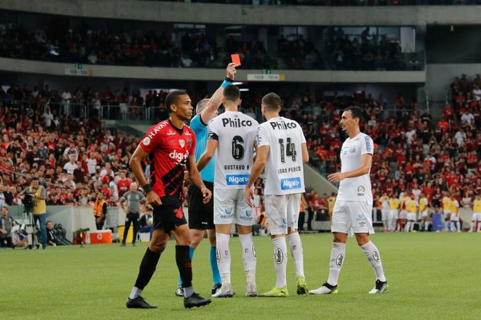 A situação do Santos no jogo se complicou definitivamente aos 23 minutos. Rony, mais uma vez, tentou uma jogada individual pelo lado direito, passou por Luan Peres e foi puxado pelo zagueiro. Daronco mostrou o segundo cartão amarelo e expulsou o santista. (Estadão Conteúdo)