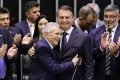 “Tenho uma surpresa para vocês. Muito se falou aqui das loucuras do Marcelo! Marcelo, meus amigos, começou no mês de março tendo um infarto, oito paradas cardíacas. Isso para começar! Depois veio mais: ‘Papai, a Lyhta está grávida’. ‘Que bom!’. ‘De três’”, contou Carlos Alberto, aos risos. e completou: “Olha, é uma emoção, eu não via a hora de poder apresentar ao nosso público os meus filhos. Tenho mais duas filhas, mas apresentar os meus trigêmeos. Estão apresentados, Brasil! Estão aqui!”, disse Marcelo de Nóbrega, exibindo as três crianças.