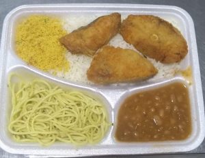 arroz – arroz integral – feijão carioca – feijão tropeiro – macarrão – farofa – batata frita – salada