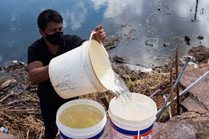 Água é coletada ao lado do esgoto
