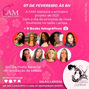 A FAM lançará no próximo dia 07/02/ o PROJETO ” DESCOBRINDO A BELEZA”, que tem como objetivo ajudar essas mulheres a elevar a AUTO_ ESTIMA, onde vão passar por um dia de cuidados especiais com profissionais de imagem pessoal. Cada uma das 9 mulheres selecionadas após a transformação , passará por uma sessão de fotos.