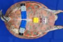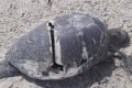 A tartaruga, que mede 1,77m de comprimento, foi anilhada com uma espécie de brinco de metal, que auxilia nos estudos voltados à conservação da espécie.