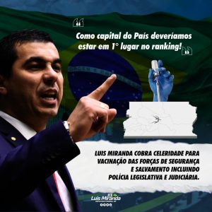 O Deputado Federal Luís Miranda do DEM, cobrou celeridade na vacinação em Brasília. A capital da República, assim como o maior centro comercial: São Paulo, recebem pessoas de todas as regiões do país. Essa celeridade foi pedida inclusive para as forças de Segurança e salvamento, incluindo das polícias legislativas e Judiciais que integram Câmara dos Deputados, Senado entre outros órgão. Luis Miranda que foi testado positivo para Covid, em outubro de 2020, com risco por conta de sua bronquite asmática,no entanto, informou que só tomaria a vacina após a imunização de todos os brasileiros: “A única forma de sairmos dessa situação é vacinando toda população e fortalecer a economia”. Atualmente Miranda é Relator da Reforma Tributária onde levanta a bandeira de Menos imposto e mais renda!
