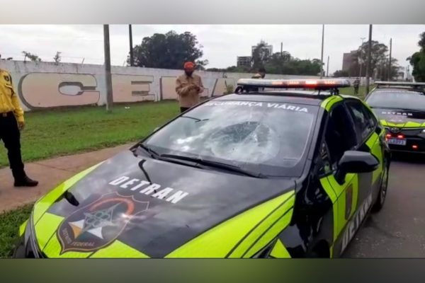 Motorista surta e quebra vidros de viatura do Detran-DF durante abordagem; veja o vídeo
