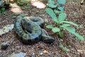 Um macho de sucuri-verde repousa a cabeça sobre o corpo da fêmea, que é muito maior (Bonito, MS)