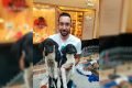Ele com a cadela Caramelo, que está disponível para adoação após ser castrada