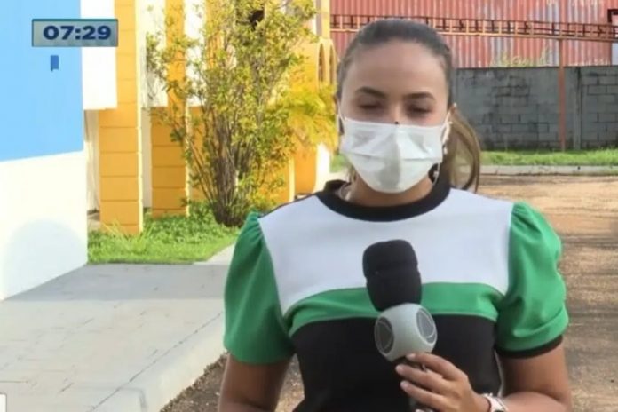 A jornalista estava com uma máscara de proteção, dando informações sobre um mutirão de limpeza em praias de Palmas, Tocantins. Assim que ela terminou de falar, o comandante do telejornal fez o alerta: “Tira a abelha do nariz, pelo amor de Deus”, exclamou.