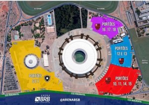 A torcida do Flamengo terá acesso ao estádio nos portões virados ao Brasília Shopping, enquanto os torcedores do Botafogo ficarão localizados nos setores próximos à Arena BRB Nilson Nelson. Confira: