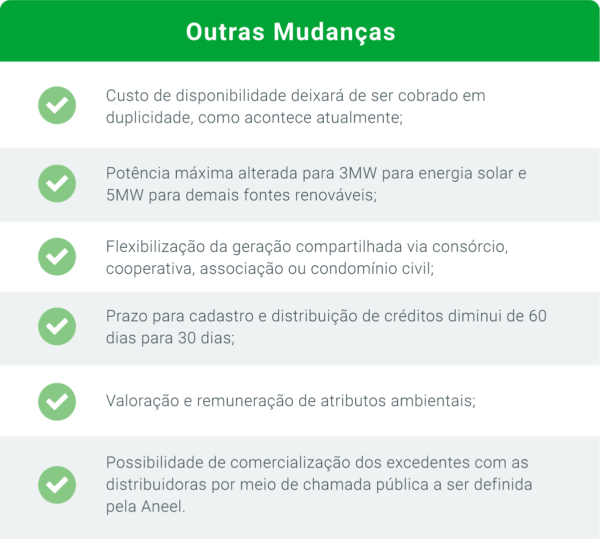 Com a nova legislação o que muda é que esses créditos passam a ser taxados com o intuito de cobrir as despesas da distribuidora com a infraestrutura e investimentos na rede elétrica.