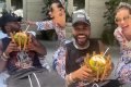 O americano parece estar se divertindo no Brasil. Na noite anterior, ele foi visto na plateia do show do festival curtindo o show da banda Iron Maiden.