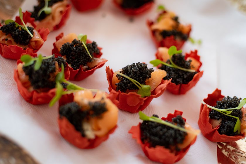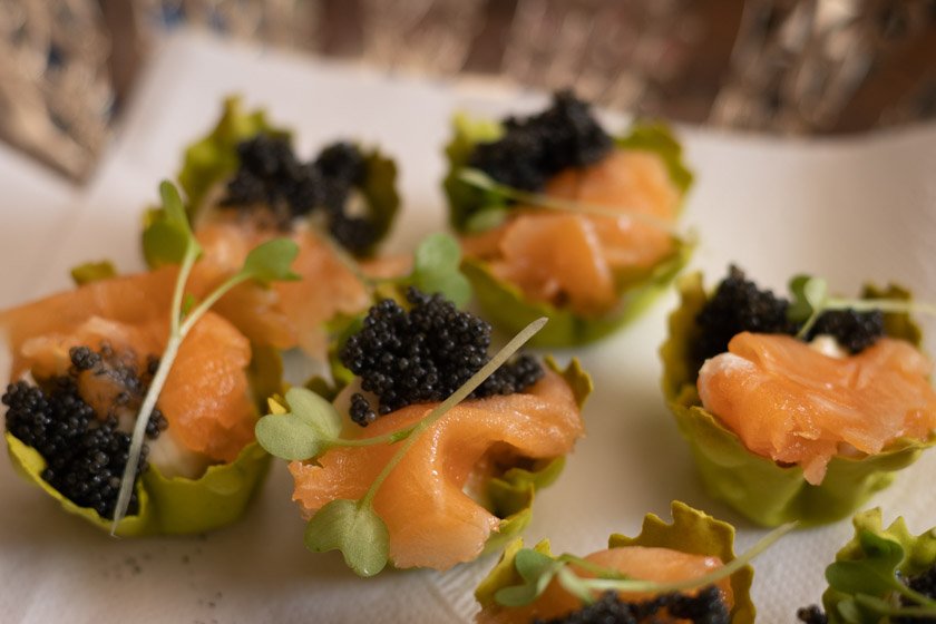 A harmonização das bebidas com o cardápio selecionado para ocasião não teve erros. Claudia Salomão chamou a chef mineira Grazielle Botelho para preparar o menu do almoço. Além das entradinhas, os pratos principais agradaram aos paladares.