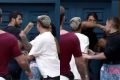 A confusão começou depois de Shay retornar para a sede e disparar gritos de “Acusa Mais” e “Otários” para o autointitulado grupo A. Ofendido, Vini Buttel foi o primeiro a caçar uma intriga com o ex-Casamento às Cegas, que foi continuada por Tiago, e terminou em agressões.