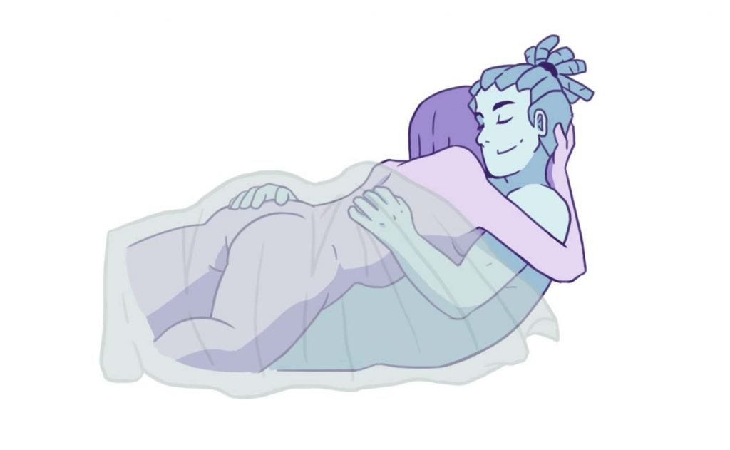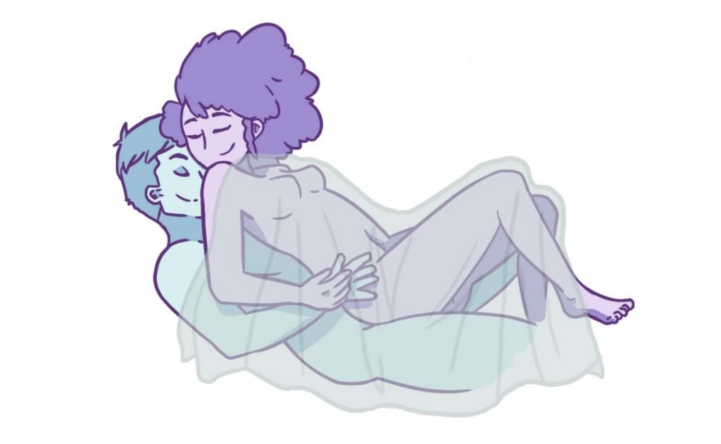 A conchinha também é ideal para as cobertas, já que, além de ser deitada, favorece tanto a penetração quanto a masturbação