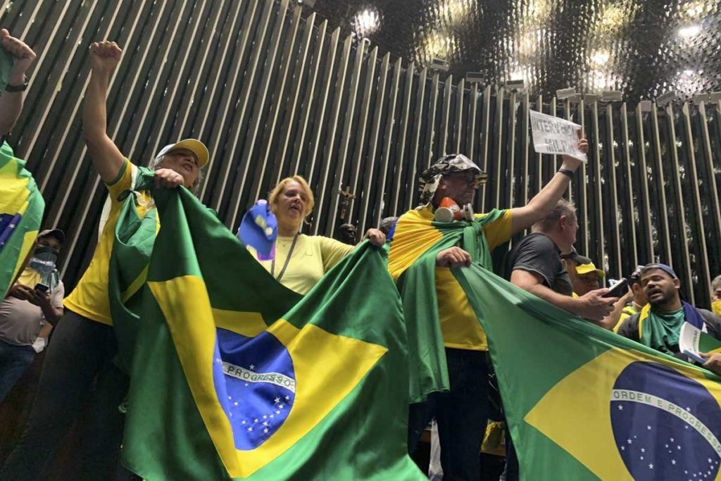 Manifestantes bolsonaristas terrorismo enfrentam a polícia, invadem e destroem o Congresso nacional 26