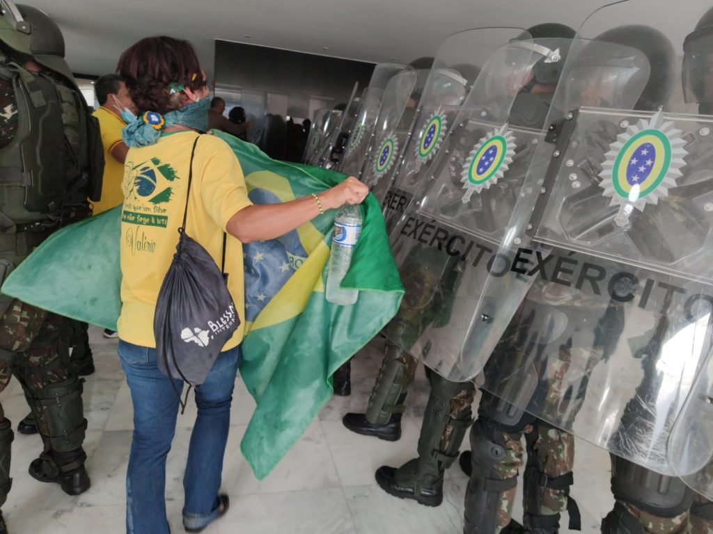 Os próprios golpistas chegaram a afirmar que o Exército vinha colaborando com o acampamento. Três dias antes da invasão na Praça dos Três Poderes, circulou um vídeo mostrando militares descarregando itens no QG, atuando na estrutura do movimento. Bolsonaristas comemoraram: “O Exército está ajudando”, disse uma mulher. Na ocasião, as Forças Armadas negaram, argumentando que estavam ajudando na desmontagem e retirada de estruturas.