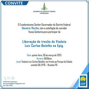 O viaduto da Epig, que se chamará Luiz Carlos Botelho, é um dos 49 que estão em construção, manutenção ou que o GDF já entregou desde 2019. Isso mostra o compromisso deste governo em trabalhar para garantir mais segurança, conforto e agilidade para os motoristas que trafegam pela região, diariamente.