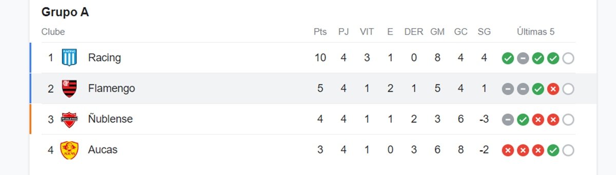 O Flamengo, que vive situação complicada na Libertadores, entra em campo nesta quinta-feira (7/6), às 21h, contra o Racing, pela 5ª rodada da competição.