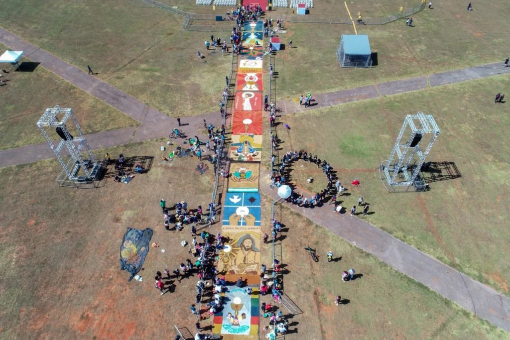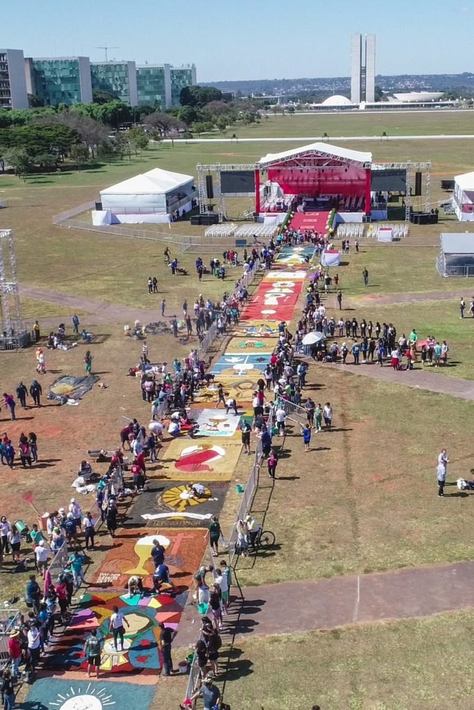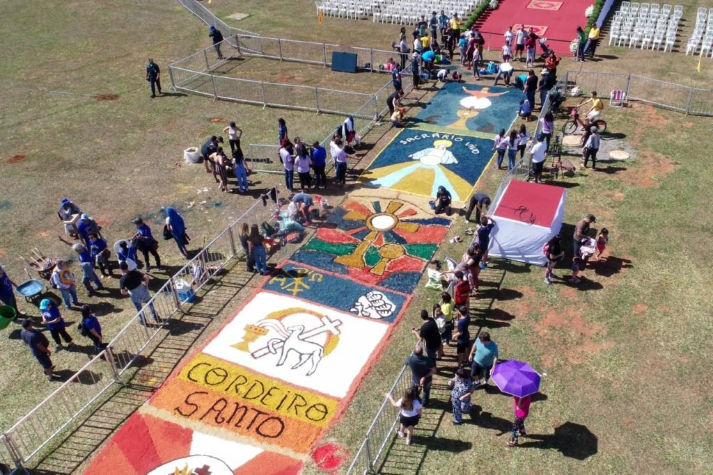 Movimento de renovação carismática católica Fparticipam da montagem dos tradicionais tapetes de Corpus Christi no gramado central da Esplanada próximo a Catedral de Brasília 12