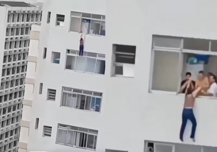 Aplausos! Vizinhos de um prédio no Guarujá, litoral de São Paulo, agiram como verdadeiros heróis sem capa para resgatar uma mulher que ficou pendurada na janela ao limpar o vidro. O risco de queda era altíssimo, mas com agilidade e trabalho em equipe, tudo terminou bem. Veja o vídeo abaixo!