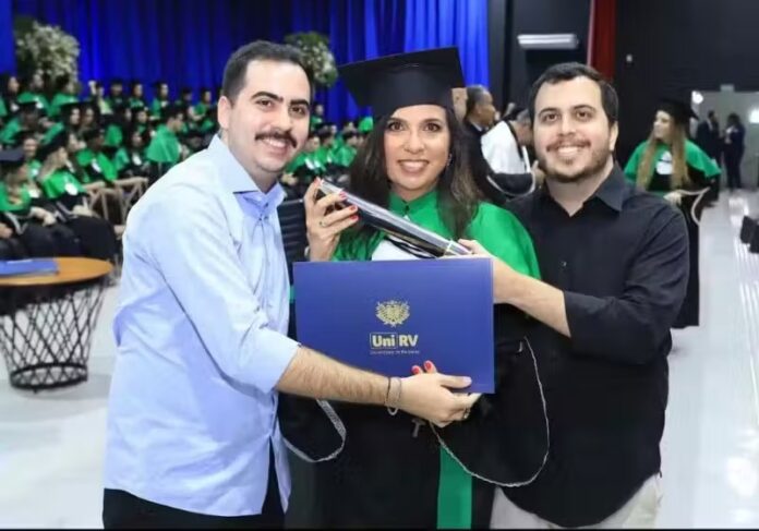 Juliana Julien, a mãe que adiou o sonho de fazer medicina a vida toda, para antes formar os filhos, recebeu o diploma das mãos deles, aos 53 anos, em Formosa, Goiás. – Foto: arquivo pessoal