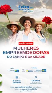 O Cruzeiro recebe, entre os dias 15 e 20 de dezembro, a edição especial “Mulheres Empreendedoras do Campo e da Cidade” da Feira do Trabalho e do Campo. A iniciativa ganha ainda mais significado ao ter sua abertura no dia 15, data em que é celebrado o Dia Nacional da Economia Solidária, reforçando o compromisso do evento com práticas econômicas baseadas na cooperação, sustentabilidade e inclusão produtiva.
