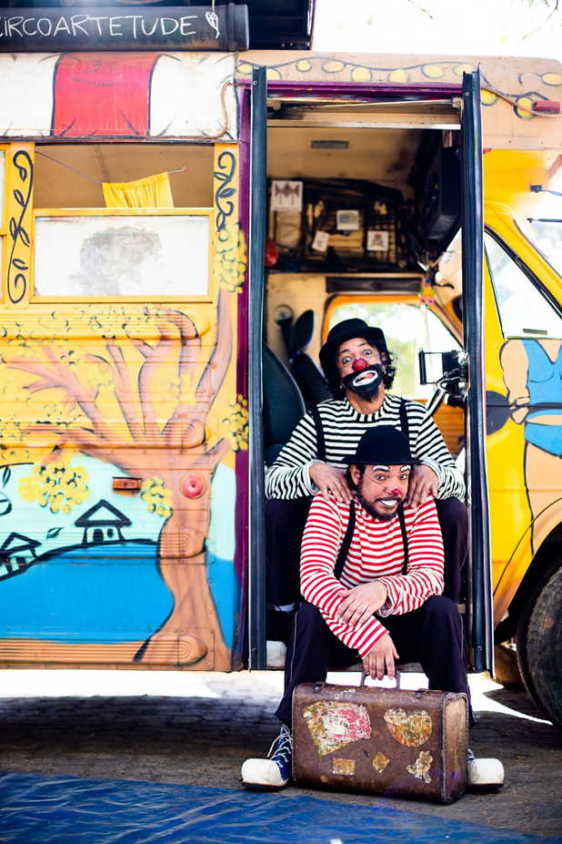 O Circo Teatro Artetude reúne os palhaços Ankomárcio Saúde e Ruiberdan Saúde, artistas experientes na linguagem da palhaçaria tradicional e contemporânea. Com acrobacias, malabarismo e humor físico, a dupla explora a convivência e a comicidade cotidiana, criando espetáculos afetivos e de forte interação com o público. Eles circulam por festivais, praças e projetos culturais pelo país, sempre reforçando a potência do riso como elo comunitário. O espetáculo conta ainda com o palhaço Espiga de Milho.