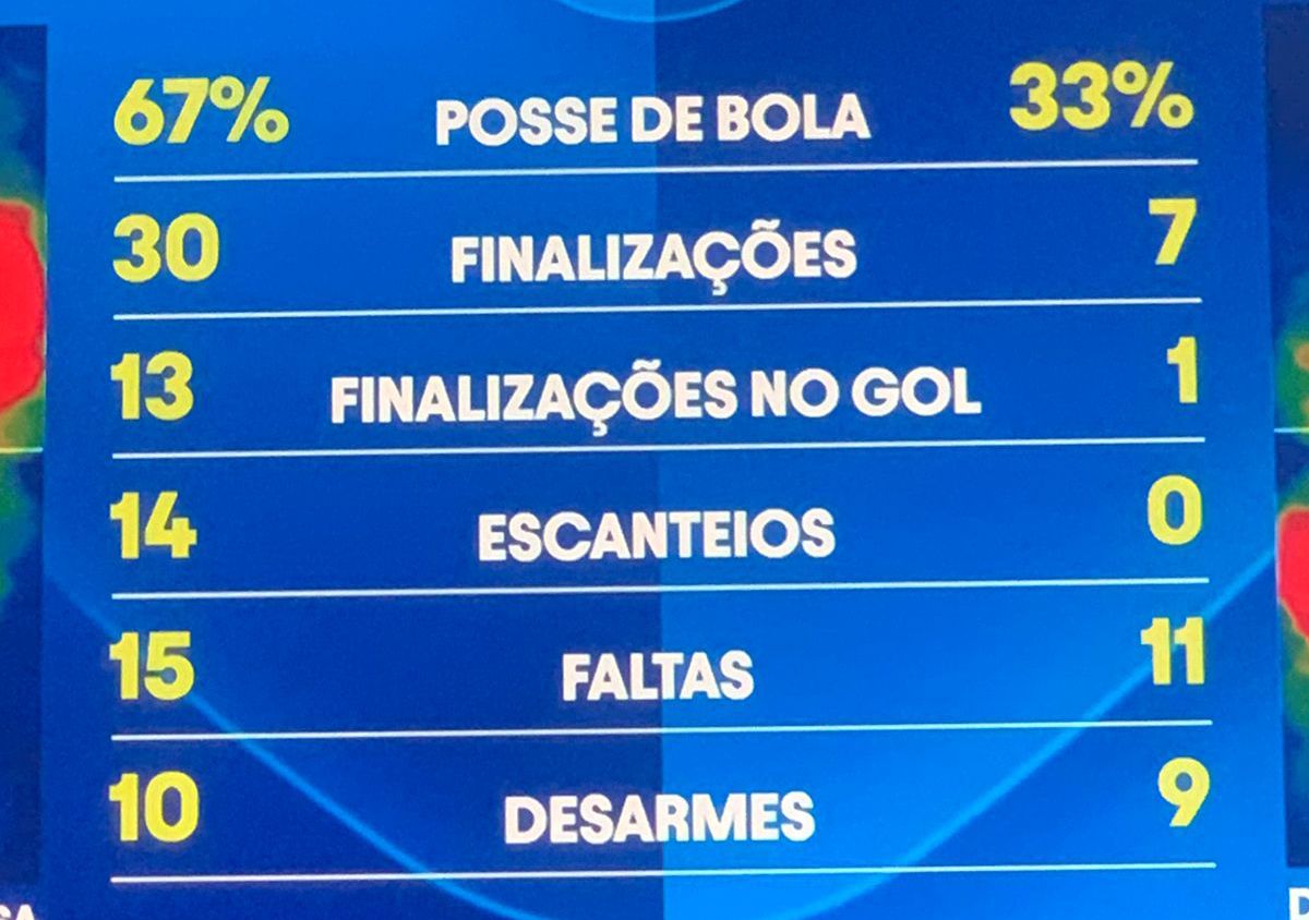 O volume ofensivo do Vasco foi tão grande que a equipe terminou o jogo com 30 finalizações e 9 grandes chances criadas. Porém, não converteu as oportunidades e empatou em 1 a 1 com os catarinense.